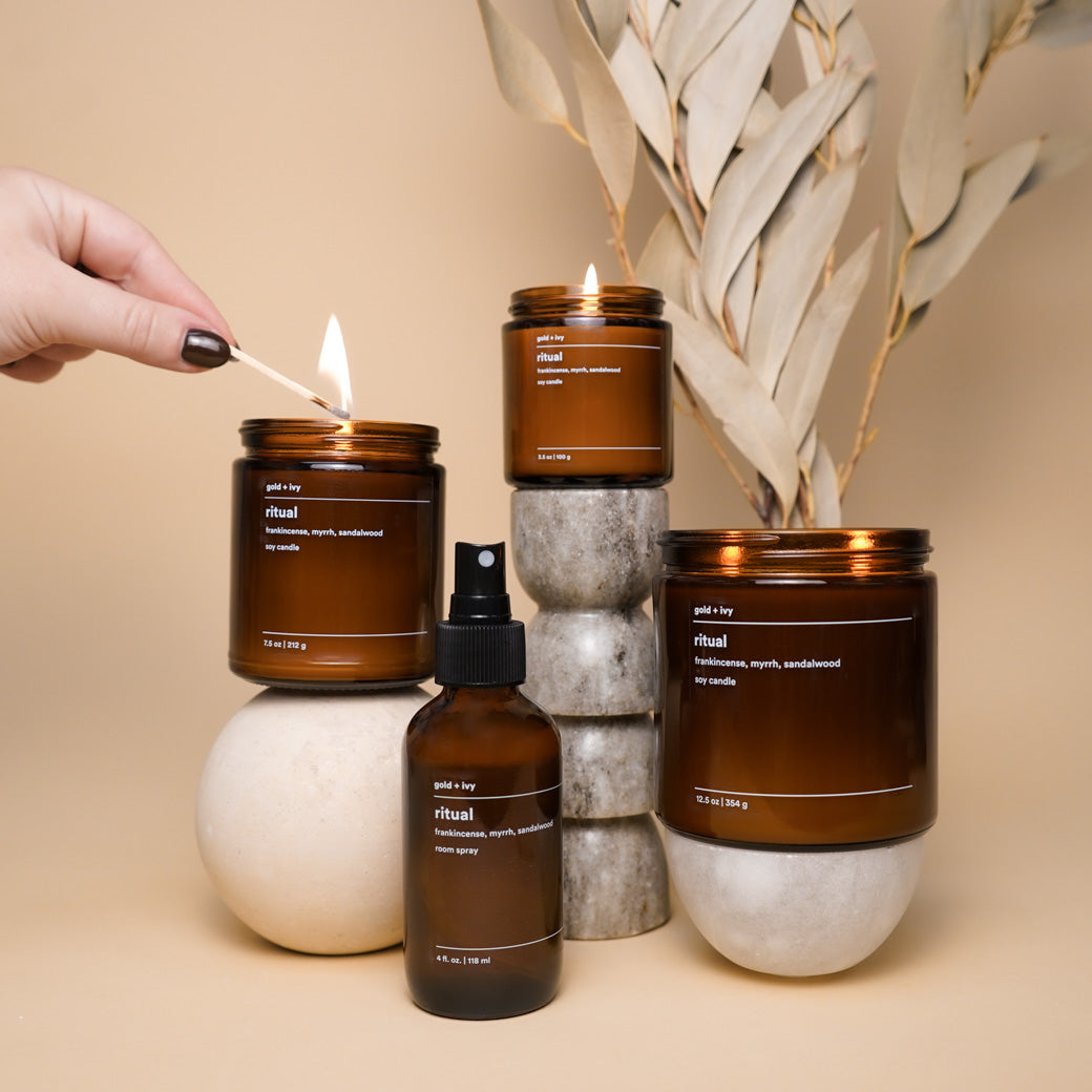 this collection blends resinous, spiced + woodsy notes for a grounding, nature-inspired experience