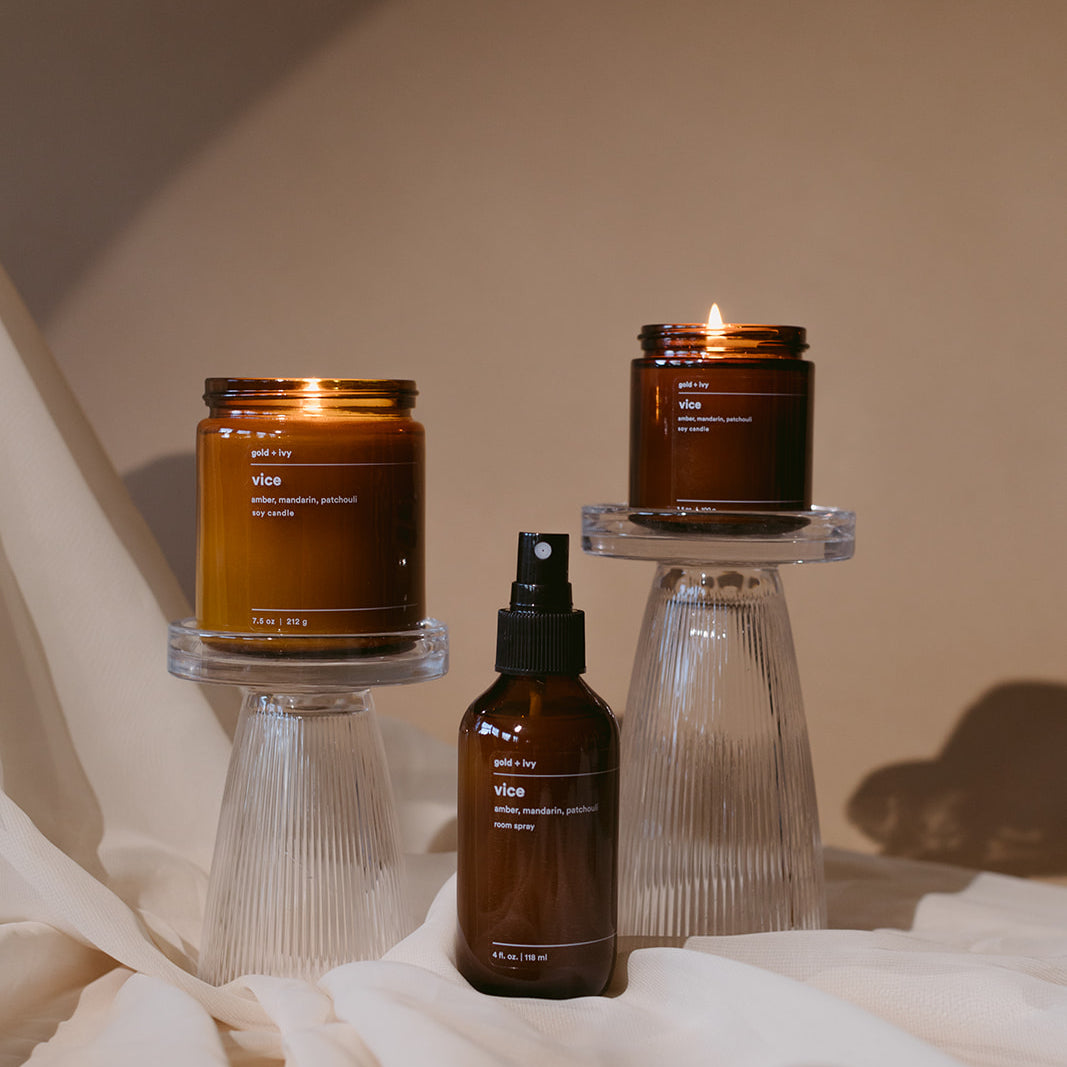 gold + ivy candles are made in Nashville, TN with 100% American-grown soy wax for a clean and eco-friendly burn. We use lead-free cotton wicks and non-toxic, phthalate-free fragrance oils infused with essential oils. Our candles are always vegan, cruelty-free, phthalate-free, and petroleum-free, so that you never have to sacrifice health for home fragrance.